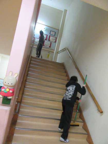 朝の会が始まるまでの時間に、全校のためにできることを考え行動しています。最高学年として立派な姿です。