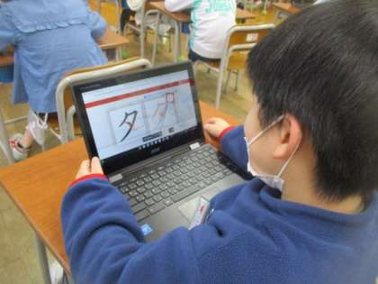 写真は、教室でクラウドドリルに取り組んでいる様子です。