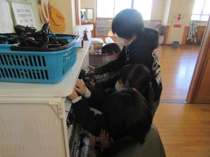 そこで、みんなの充電器を、持ち帰りやすいようにまとめてくれた子たちがいました。
