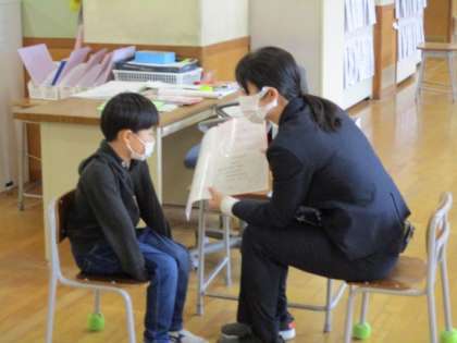 2学期のがんばりを一緒に振り返りながら、あゆみを渡しました。