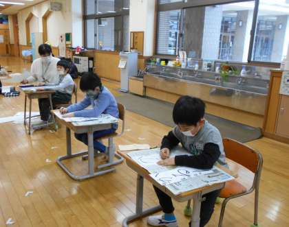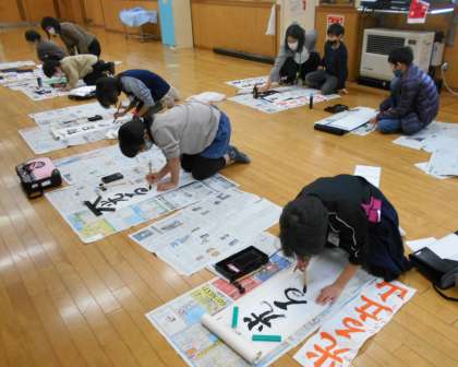 1年生と2年生は硬筆、3年生以上は毛筆で書き初め大会に臨みました。