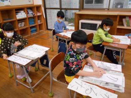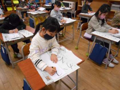 子供たちの真剣な表情に感心しました。 一画一画、丁寧に取り組んでいました。
