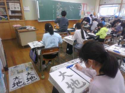 3学期は、学年のまとめの学期です。書写では、最後の毛筆の学習を行いました。今まで教わったことを思い出しながら、最後の作品を仕上げていきました。