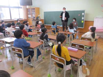 外国語活動を体験しました。数字やアルファベットを曲に合わせて歌い、楽しく活動しました。