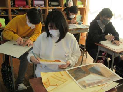 図画工作科の時間に、それぞれの「思い出の風景」を描いています。6年間過ごした小学校には、たくさんの思い出がありますね。