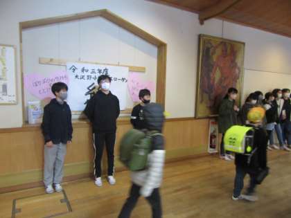 運営委員会が企画した「あいさつリレー」今週は、6年生の担当です。下学年のみんなに気持ちのよいあいさつができましたね。