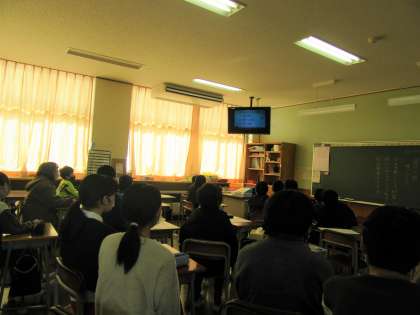 今日は、中学校での生活について、校区の大沢野中学校から送っていただいた動画を通して学びました。