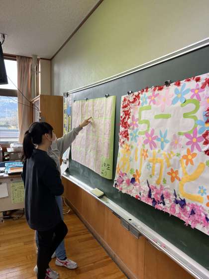 そこには、6年生から5年生に向けて、お祝い週間のお礼、来年度に向けた励ましの言葉のなどのメッセージが書かれていました。