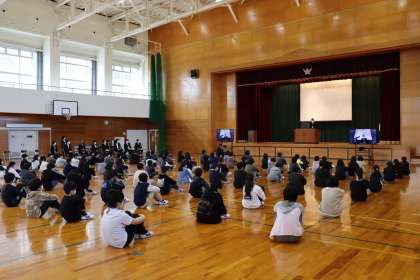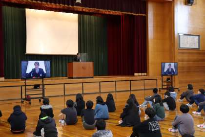 6年生は在校生の代表として、体育館で着任式と始業式参加しました。
