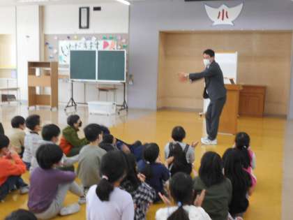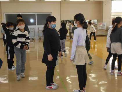 入学式の後は、4年生全員が広い部屋に集まり、感染症対策を行いながら学年集会を行いました。学年3人の先生の自己紹介を聞いた後、仲間づくりゲームを行いました。