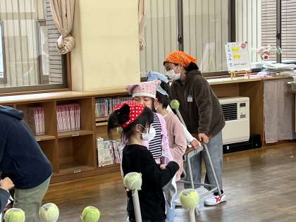 1年生を集めて、ちりとりとほうきの使い方を丁寧に教えたり、重い机を一緒に運んだりしています。