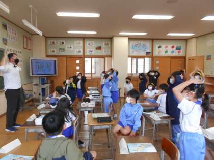 今日は2組と3組の外国語活動の日で、学習内容は主に「世界のあいさつ」でした。ALTの先生と楽しく活動しました。
