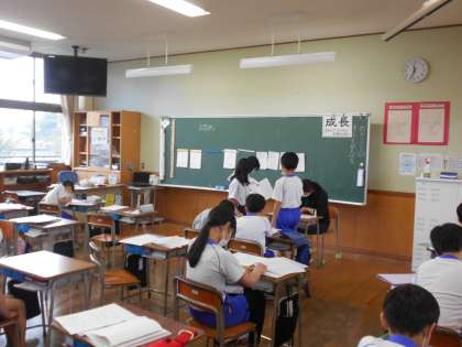 1組も2組も先日の学力調査の解説や直しをしていました。3組は先日問題用紙を用いて解説を行ったため、返却のみ行いました。