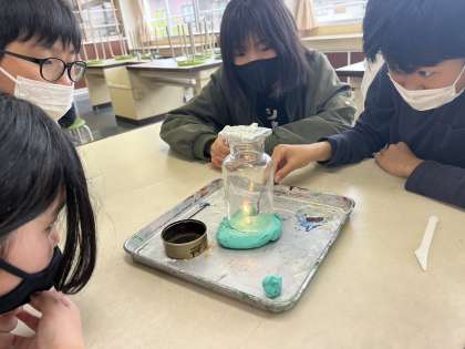 ろうそくを使った実験を行いました。