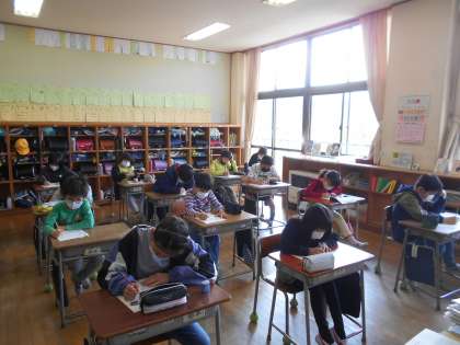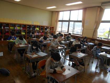 4年生の火曜日のスタートタイムは計算です。今日は引き算の100マス計算に挑戦性しました。先週の足し算と異なり苦戦している子供もいましたが、速さと正確さを求めてみんなでがんばりました。