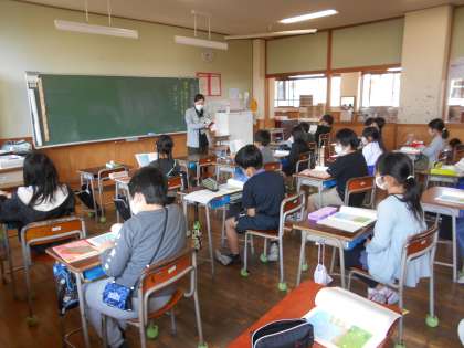 1組、2組:国語で「白いぼうし」を読み進めていました。