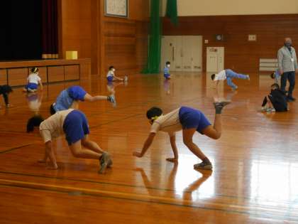 3組:体育で、体力を高める運動をしていました(今日から体育専科の先生の授業が始まりました。)