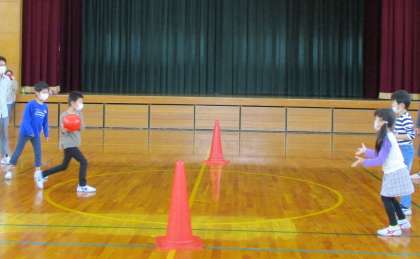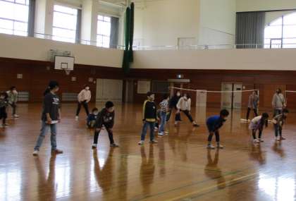 保護者の方々と一緒に、上学年はビーチバレーボール、下学年はドッヂボールを行いました。すみれ・ひまわり級の活動の目当て「たのしく・なかよく」のために、独自のルールを考えて取り組みました。
