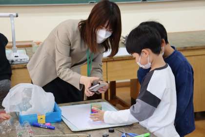 図画工作科「ひかりのプレゼント」では、光の当て方を工夫しながら、素敵な形や色の発見を楽しみました。