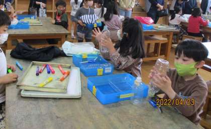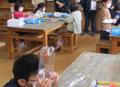 図画工作科「ひかりのプレゼント」では、プラチック素材のものに光を通して、楽しむ学習です。子供たちは、色を付けたり、形を変えたりして、いろんなことを試していました。