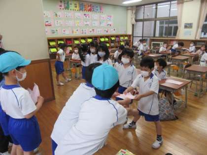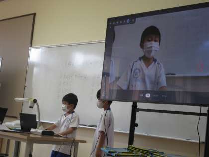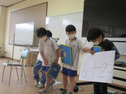 1年生に学校のことを教えようと、グループごとに発表を行いました。学習や運動、パソコンの使い方や給食の食べ方まで、子供たちは1年生に分かりやすく伝えようと一生懸命がんばっていました。
