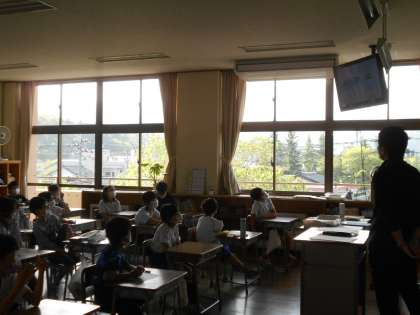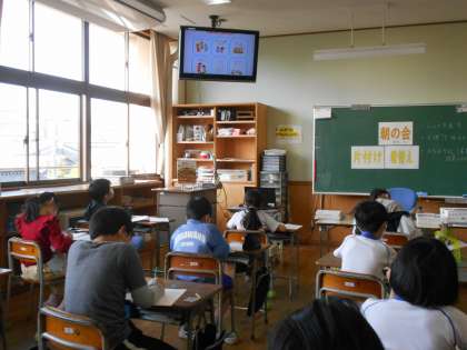 今日のスタートタイムは、安全な大型連休を過ごすための全校放送がありました。子供たちは、放送をしっかりときいていました(メモをとってる子供もいました)。