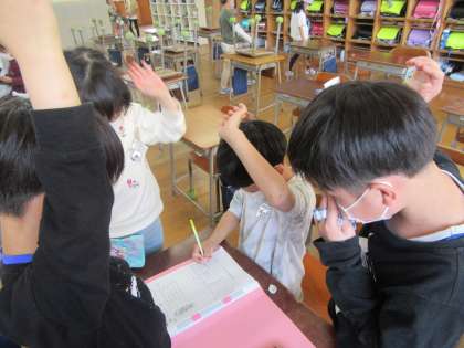 4月28日(木)2年生 掃除の振り返り 公開日 2022/04/28 更新日 2022/04/28 2年生 掃除の後には、掃除リーダーが中心となって振り返りを行っています。 自分たちで振り返りを進めることが上手になってきました。