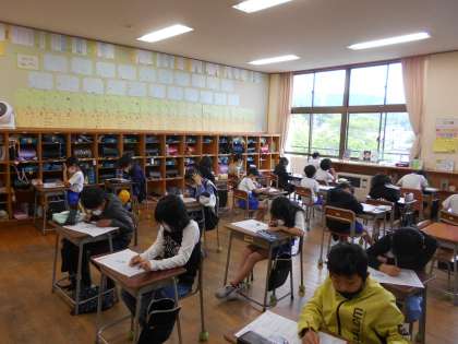 3組:国語科「白いぼうし」のテストを行いました。今日、答案を持ち帰ります。
