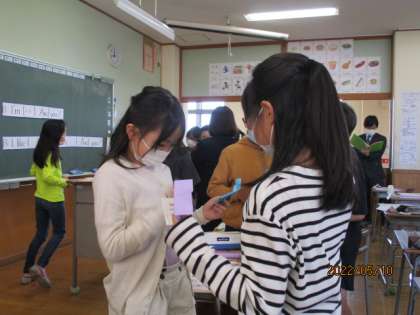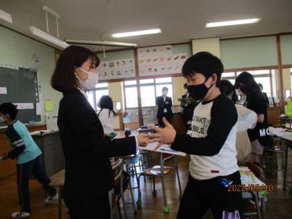 5年生 5月10日(火) 外国語の授業 その2 公開日 2022/05/11 更新日 2022/05/11 5年生 外国語を使って相手に自分の好きな物を伝えられた嬉しさや、名刺交換をたくさんの人とできた満足感を、子供たちが味わうことができました。