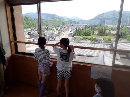 3年生 5月10日(火) 展望塔から 公開日 2022/05/11 更新日 2022/05/11 3年生 大沢野小学校の展望塔に行きました。展望塔から見る町の景色はとてもきれいでした。 どの方角にどんな建物があるかを調べました。これから始まる社会の学習が楽しみです。