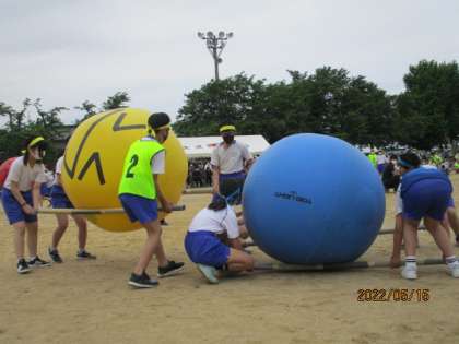 5年生はブルーシートで、6年生は棒を使って運びました。運び方がレベルアップしていても、さすが最高学年、スムーズに運んでいて練習よりもさらにうまく運んでいました。