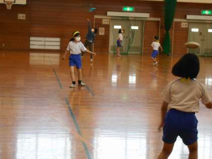 運動会が終わり、4年生は体育専科の先生による体育が再開しました。今日からの学習内容は「アルティメット」と呼ばれるディスク(フリスビーの柔らかいもの)を使った学習です。