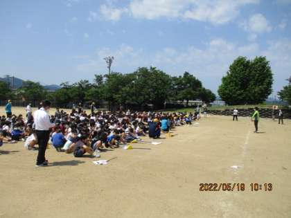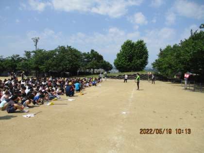 2回目の避難訓練が行われました。全学年が、安全に素早く避難することができました。今日は天気もよく、今年度初めてのグラウンドでの避難となりました。