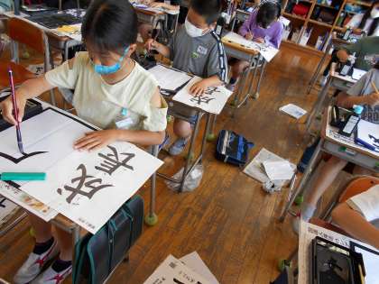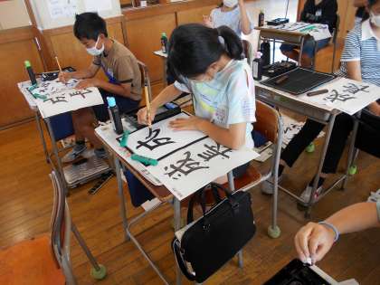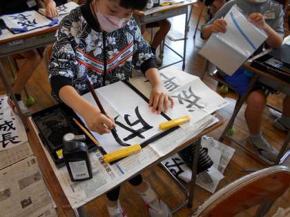 書道では、「成長」という言葉を書いています。