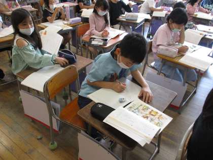 今までに習った漢字を使って、文を作りました。絵の様子説明する文を作ることができました。
