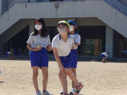 スポーツテストの一種目目、ソフトボール投げを行いました。運動会で練習したことを生かして、自分の立てた目標に向かって思い切り投げていました。運動会前に比べ、投げるフォームがよくなり、力強く投げることができました。記録が楽しみです。