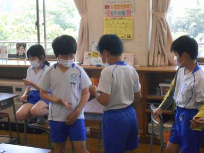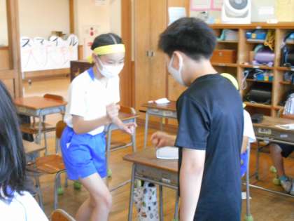 今日のコミュニケーション活動は、カツサンド(勝つ3度)じゃんけんでした。3回勝った人から座れるルールでしたが、全員座るまでのタイム短縮を目指しました。来週も同じ取り組みでタイム短縮を目指します。どんなアイディアが子供たちから出てくるのか楽しみです。