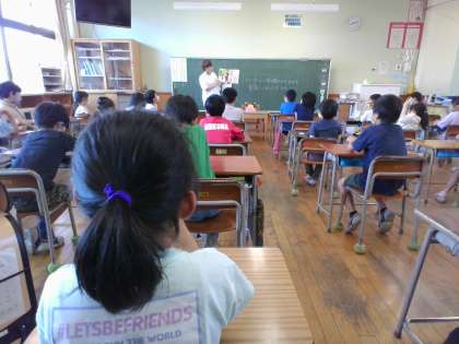 明るい語り口に引き寄せられ、子供たちは夢中で聞き入っていました。