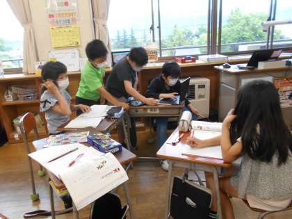 1、2枚目:カンジー博士の都道府県の学習です。都道府県名を漢字で書き、文章をつくりました。パソコンや地図帳で特産物を調べて、文章に入れている子供もたくさんいました。