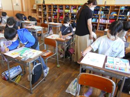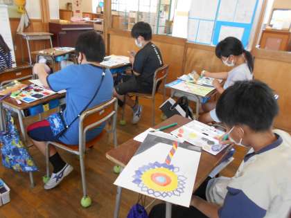 1、2枚目:図工で「まぼろしの花」を描いています。近日中に学年全員の作品がそろう予定です。みんなで鑑賞し合うのが楽しみです。