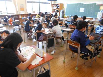 3枚目:書写で硬筆を行いました。姿勢も含めて、丁寧に鉛筆で書きました。早く課題が終わった子供は、クラウド教材の漢字に取り組みました。