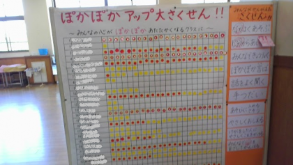 2年2くみでは、「ぽかぽかアップ大さくせん!!」をしています。