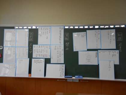今日は、和語・漢語・外来語を国語の教科書から探して、班のみんなとホワイトボードにまとめました。たくさんの和語・漢語・外来語を見つけることができました。