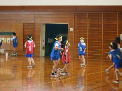1枚目:スタートタイムの様子です。今日は先週に引き続き、「カツサンドジャンケン」でした。子供の意見により、大幅にタイムを縮めました。