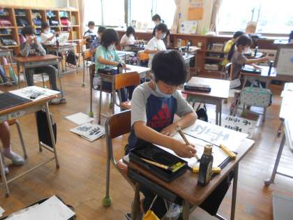 1枚目:書写で新しい字を書き始めました。今回は部分の組み立て方(上下)を意識し書きました。