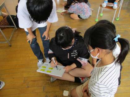 6月13日(月)4年生 学級集会 公開日 2022/06/14 更新日 2022/06/14 4年生 学級目標に合わせ、みんなが「スマイル」になるために「協力」し「やさしい」気持ちをもって取り組むことをめあてに集会を行いました。 新聞じゃんけん、スライドを使ったクイズなど、みんなが楽しめるようそれぞれがゲームを考えました。ふりかえりでは次回への課題も出てきましたが、今後のクラスの成長につなげていきたいです。