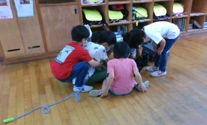 朝の時間、6年生が1年生の教室に行って、準備の手伝いをしたり、一緒に遊んだりしています!1年生も6年生も楽しそうでスマイルいっぱいですね!