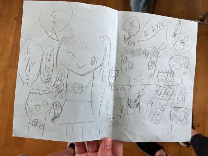『先生、見てください!』と、大事そうに広げて見せてくれたのは、かわいいイラストが描かれた1年生からのプレゼントでした。