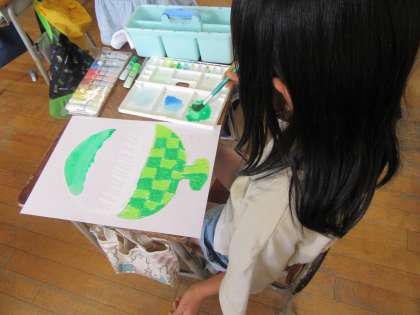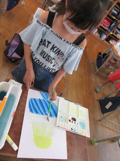 「夏といえば?」「かき氷!!」から始まった図工の学習。色の濃淡を意識しながら、自分だけのかき氷を作っています。容器や氷の形にもそれぞれの工夫が見られました。個性豊かな作品が仕上がりそうですね。