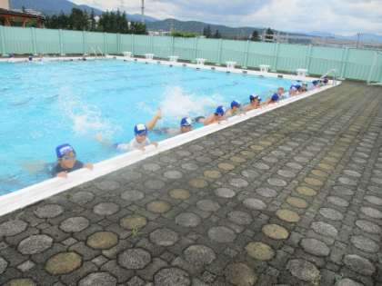 暑さも吹き飛ぶくらい、プールを楽しみました。笑顔がはじけています。